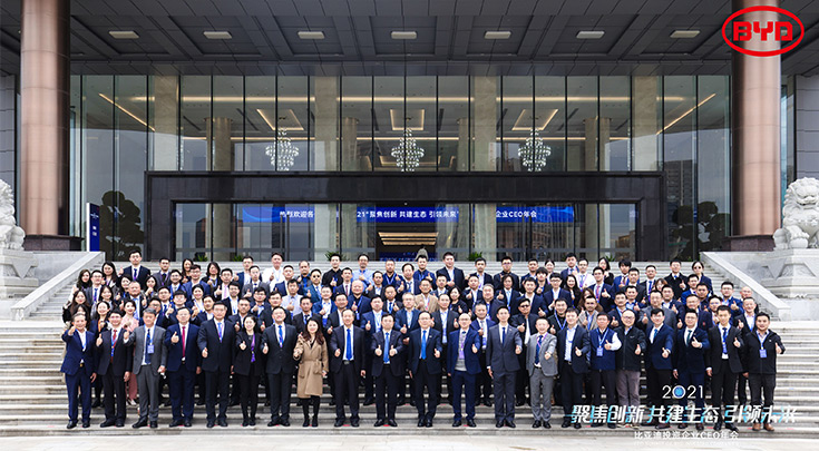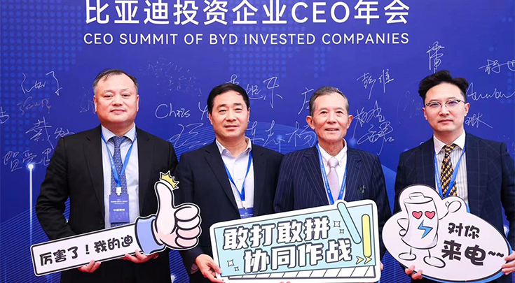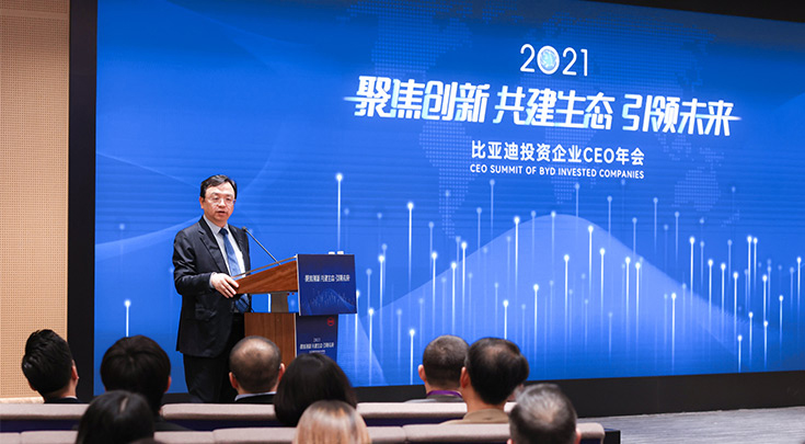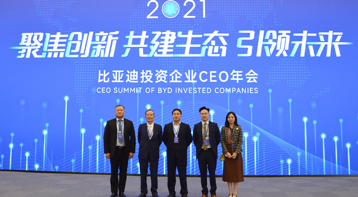 12月23日,2021“聚焦創新,共建生態,引領未來”比亞迪投資企業CEO年會在深圳比亞迪全球總部坪山舉行,比亞迪集團董事長兼總裁王傳福先生、比亞迪集團董事會秘書李黔先生等領導出席此次活動。江蘇華盛受邀參加本次投資企業CEO年會,公司董事長沈錦良先生、總經理沈鳴先生、張家港楊舍鎮農聯村黨委書記趙建軍先生、副總經理李偉鋒先生等參加活動。